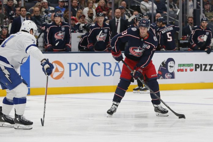 Johnson, who celebrated his 23rd birthday on Saturday, gave Columbus a 1-0 lead at 4:58 of the first period. Boone Jenner took a short drop pass from Adam Fantilli along the wall and sent a centering pass to Johnson coming into the slot. The puck went off Cernak’s stick and through his legs before Johnson collected it and slipped a backhand past Johansson’s left skate.