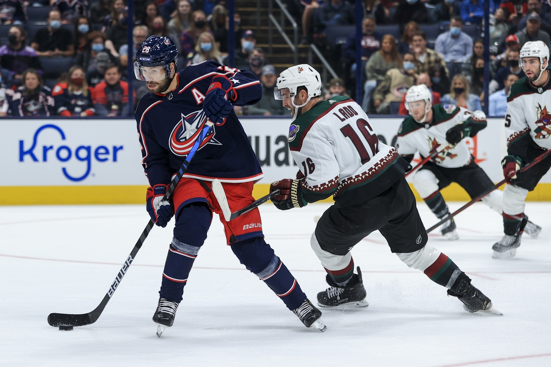 The Blue Jackets took a 1-0 lead just 40 seconds into the opener. With Arizona unable to clear the zone, Domi controlled the puck, shoveled it toward the net and Texier tipped it past Hutton.