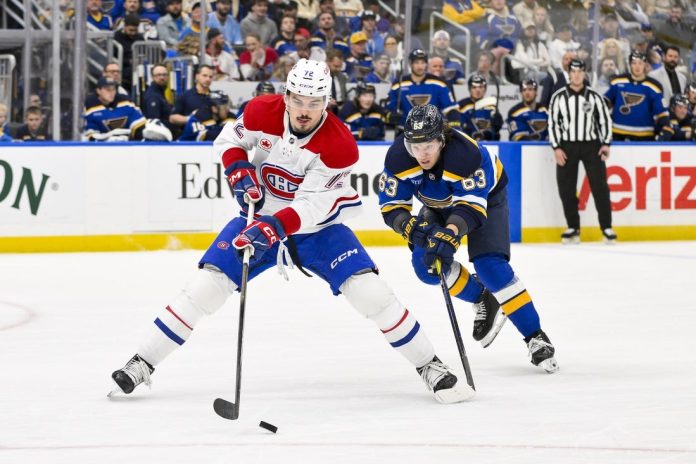 Philip Broberg and Robert Thomas each scored a goal and earned three assists as the St. Louis Blues defeated the visiting Montreal Canadiens 6-1 on Tuesday night for their seventh straight victory.
