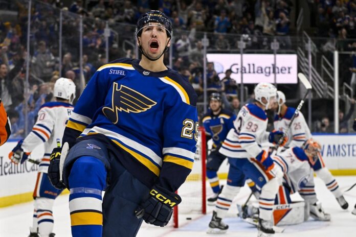 Jake Neighbours and Robert Thomas had a goal and two assists each as the St. Louis Blues defeated the visiting Edmonton Oilers 6-3 on Thursday night.