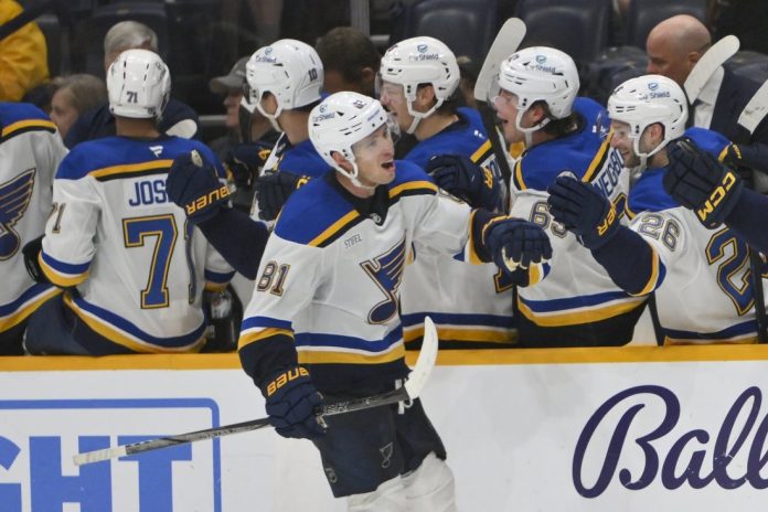 Holloway has played in all 77 of the Blues’ games this season, including Thursday. With 26 goals and 37 assists, he entered the game tied with center Jordan Kyrou for the second-most points on the team, with 63.