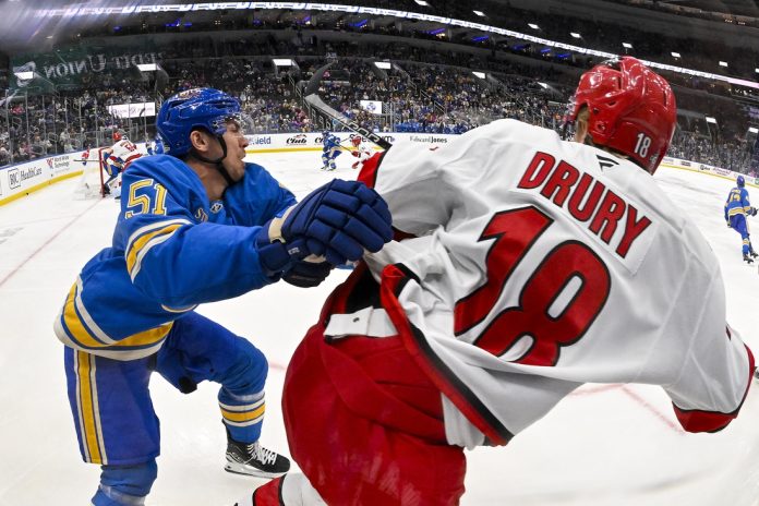 The Hurricanes took a 1-0 lead at 1:21 of the first period when Svechnikov came out from behind the net and redirected Aho’s pass into the net.