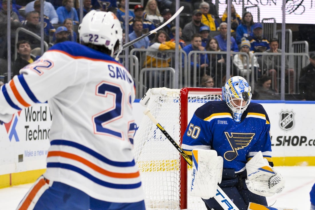 The Blues controlled much of the first period while keeping the Oilers in check at even strength. Thomas generated St. Louis’ best scoring chance, but Pickard denied his wraparound bid.