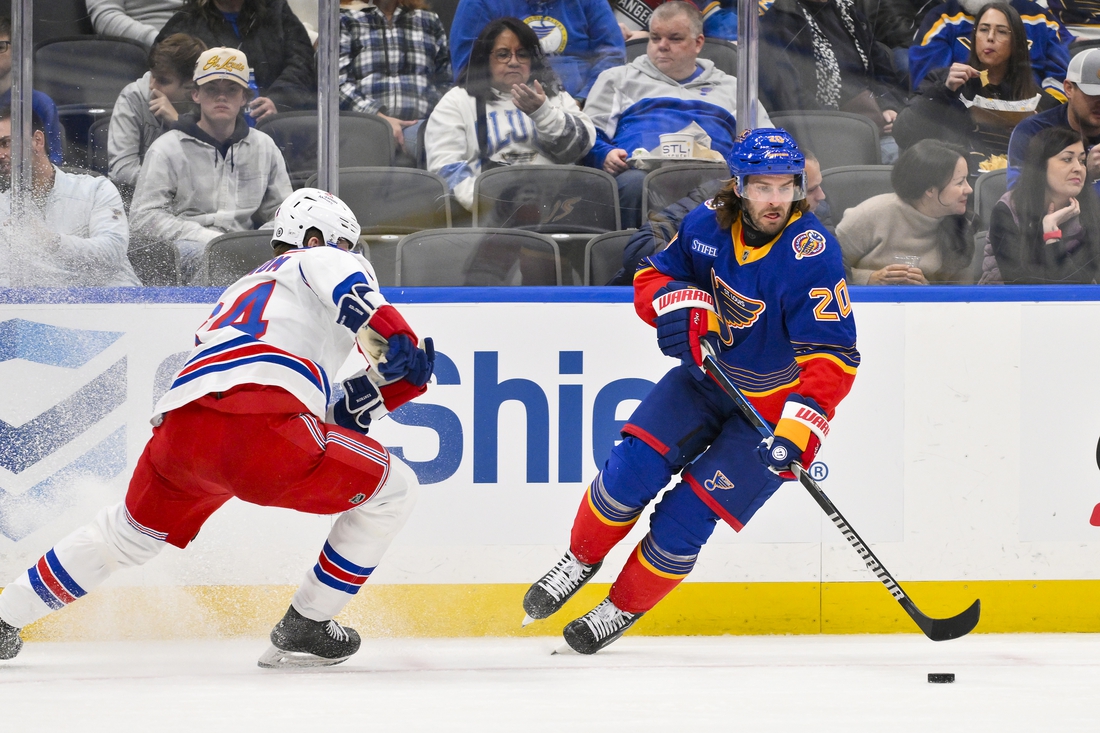 Robert Thomas scored a goal and earned an assist as the St. Louis Blues edged the visiting New York Rangers 3-2 Sunday.