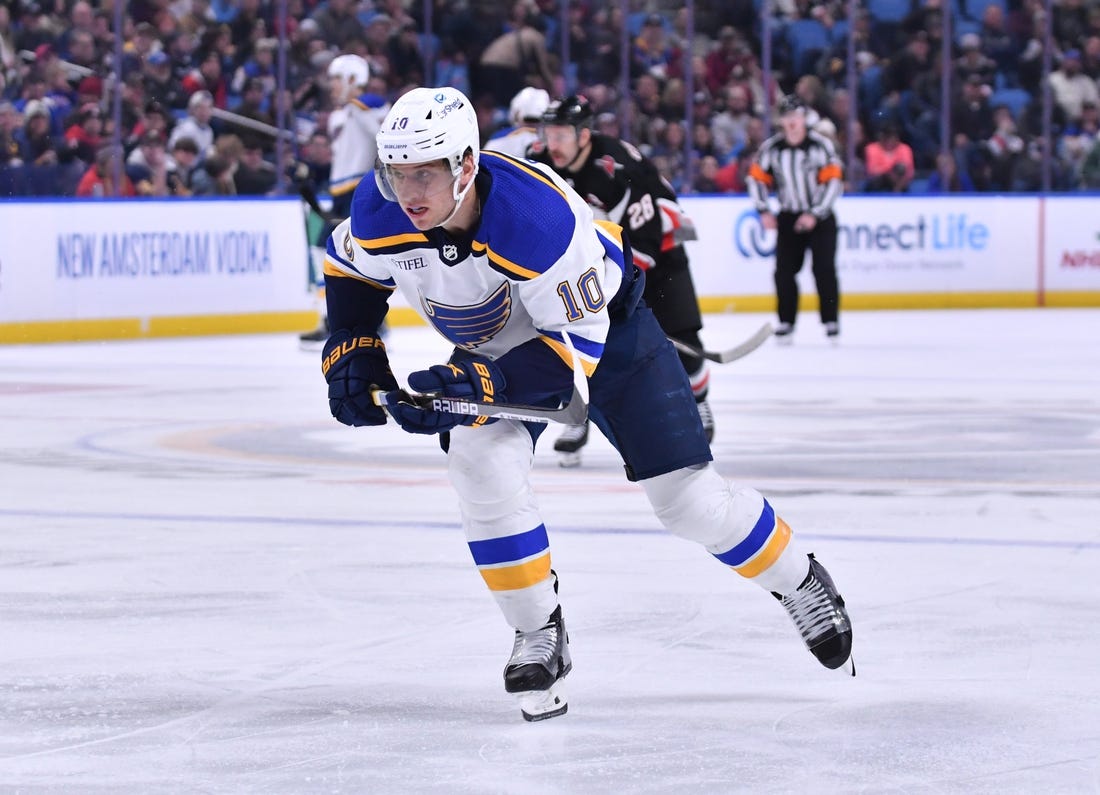 Buffalo’s Jeff Skinner and Jack Quinn scored two goals each. Brayden Schenn and Pavel Buchnevich found the net for St. Louis.