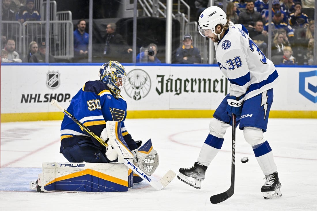 Center Robert Thomas has led the way for the Blues. He has five goals and six assists during a seven-game point streak and he leads the team in scoring with 16 points overall.