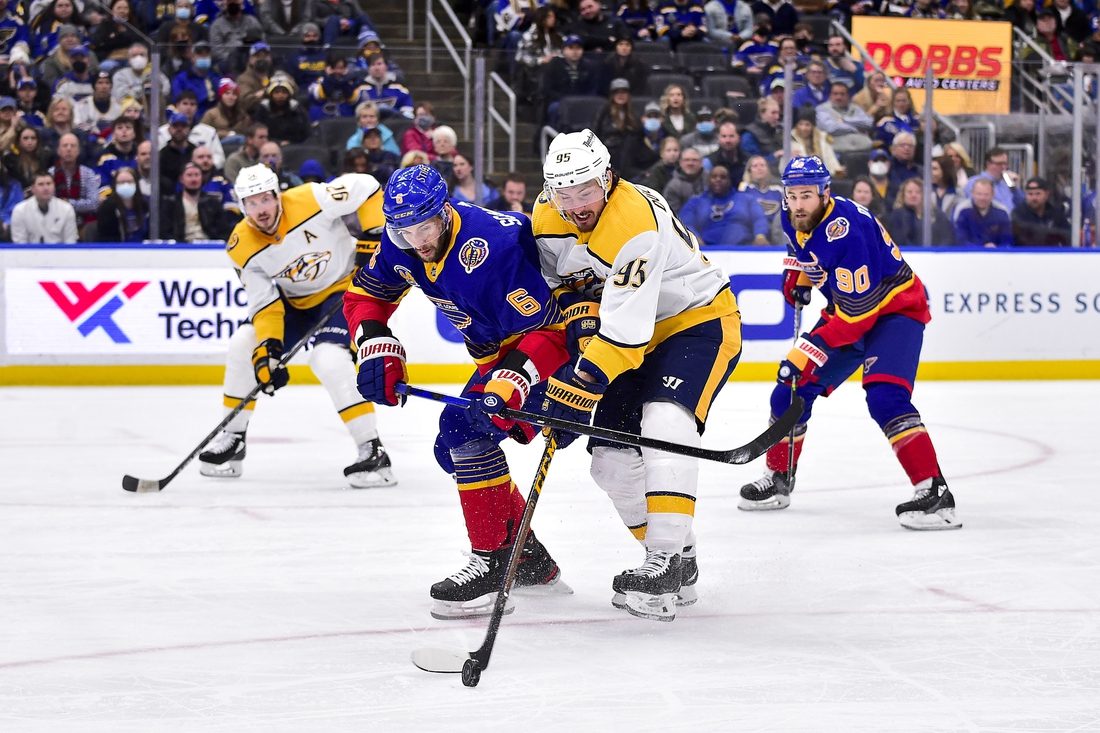 Trenin cut Nashville’s deficit to 4-3 by scoring during a goalmouth scramble with 8:27 left in the game. But Barbashev set up Schenn on a two-on-two rush with 2:35 left to restore the Blues’ two-goal lead.