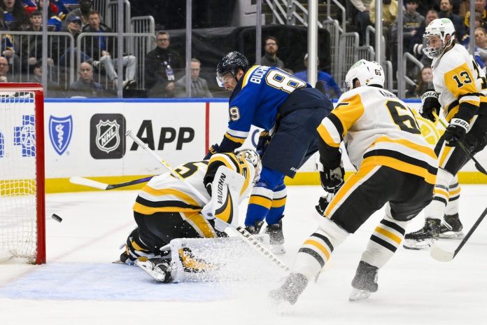 St. Louis saw a 4-2 advantage it held midway through the third period evaporate after Rakell and McGroarty rallied the Penguins. McGroarty, a rookie playing in his fifth game, earned his first two points. His first goal came with just 25 seconds left in regulation.