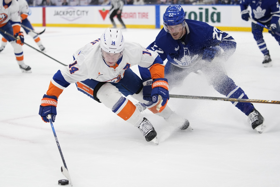 Toronto removed Woll for an extra attacker at 15:15. Barzal scored into an empty net at 17:40.