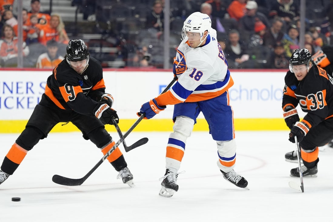 Tyson Foerster scored twice in regulation and Bobby Brink netted the only goal of the shootout as the Philadelphia Flyers eliminated the New York Islanders from playoff contention with a 4-3 home victory on Saturday.