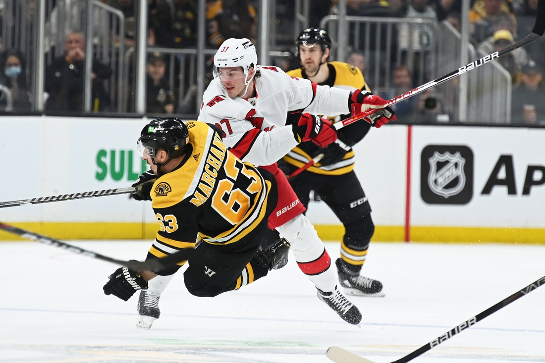 Boston began the third period on a 36-second 5-on-3 and capitalized as Sebastian Aho’s double-minor for high-sticking continued. At the 44-second mark, Marchand buried the go-ahead goal from the left circle following Charlie Coyle’s feed.