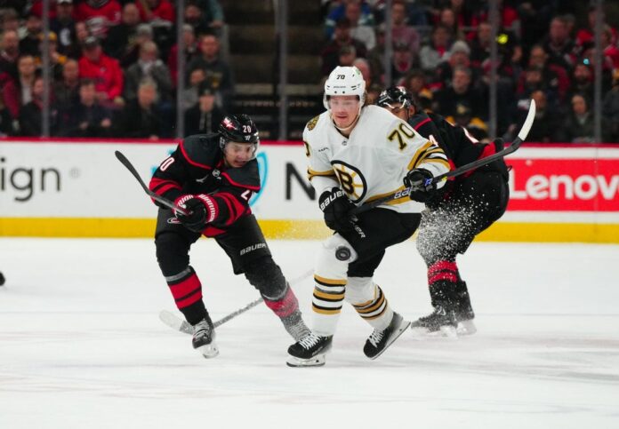 Boston took advantage of the hosts’ sluggish start after the Hurricanes’ three-day break, scoring only 2:12 into the first period. Morgan Geekie’s pass from neutral ice sent Marchand in on a breakaway for his milestone goal, which he banked past Andersen after an initial save.