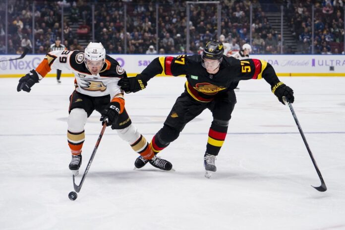 Brock Boeser scored two goals to help the Vancouver Canucks to a 3-1 win against the visiting Ducks on Tuesday night, handing Anaheim its seventh consecutive loss.
