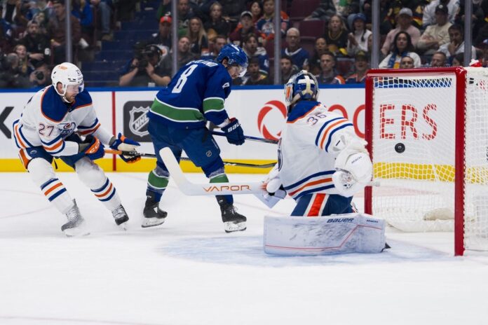 Draisaitl scored on a one-timer from the bottom of the right faceoff circle with Edmonton on a power play to cut the lead to 4-1 at 8:20 of the second. The Canucks went on a power play shortly afterward, and Pettersson scored to make it 4-1 at 11:08.