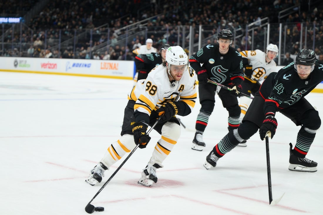 In Seattle, Pastrnak led Boston with his second multi-goal game of the trip and has scored six goals across his last seven outings.