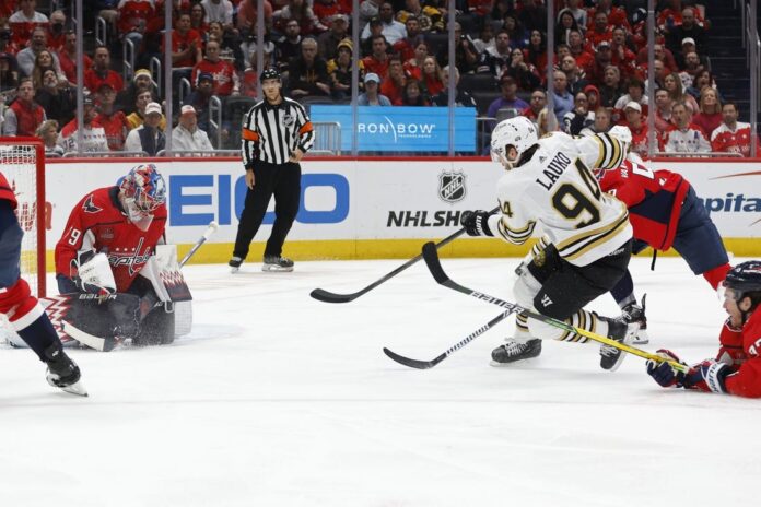 The Bruins have been shut out just twice this season, each time by Washington’s Charlie Lindgren. He faced Boston’s season-low 16 shots on Monday.