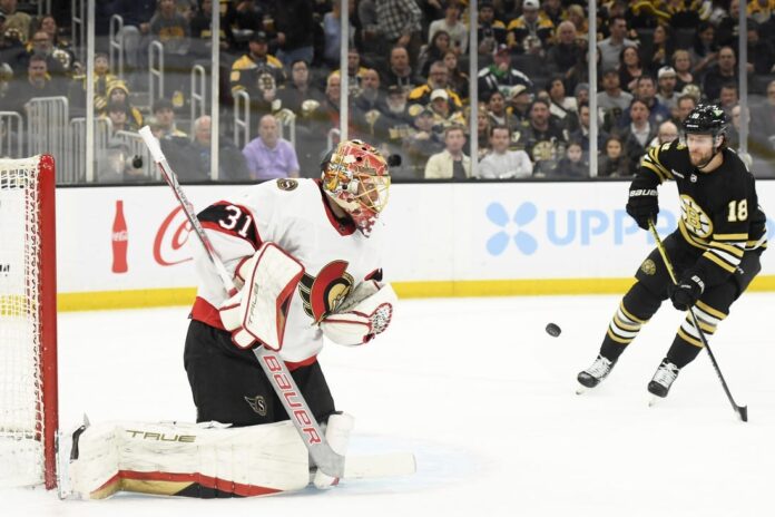 The Senators netminder also backed a penalty kill in the final four minutes, which resulted in Zub’s short-handed empty-netter with 1:48 to go off a David Pastrnak turnover.