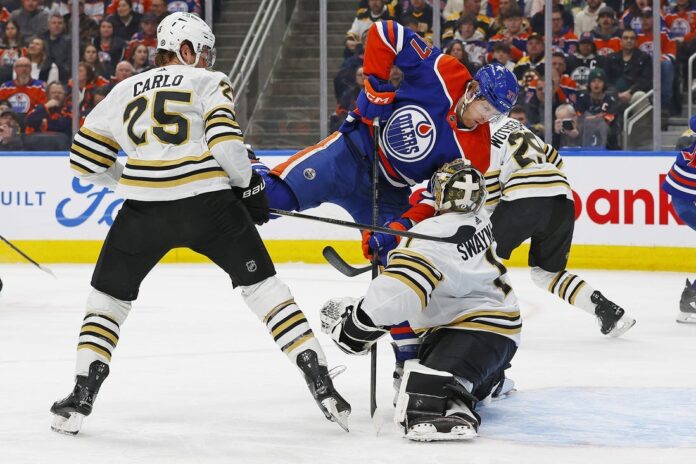 Pastrnak put the Bruins ahead again at 12:41 of the third period with a shot from the slot for his 36th, but Hyman again pulled Edmonton even 42 seconds later with a rebound tally, his 34th.