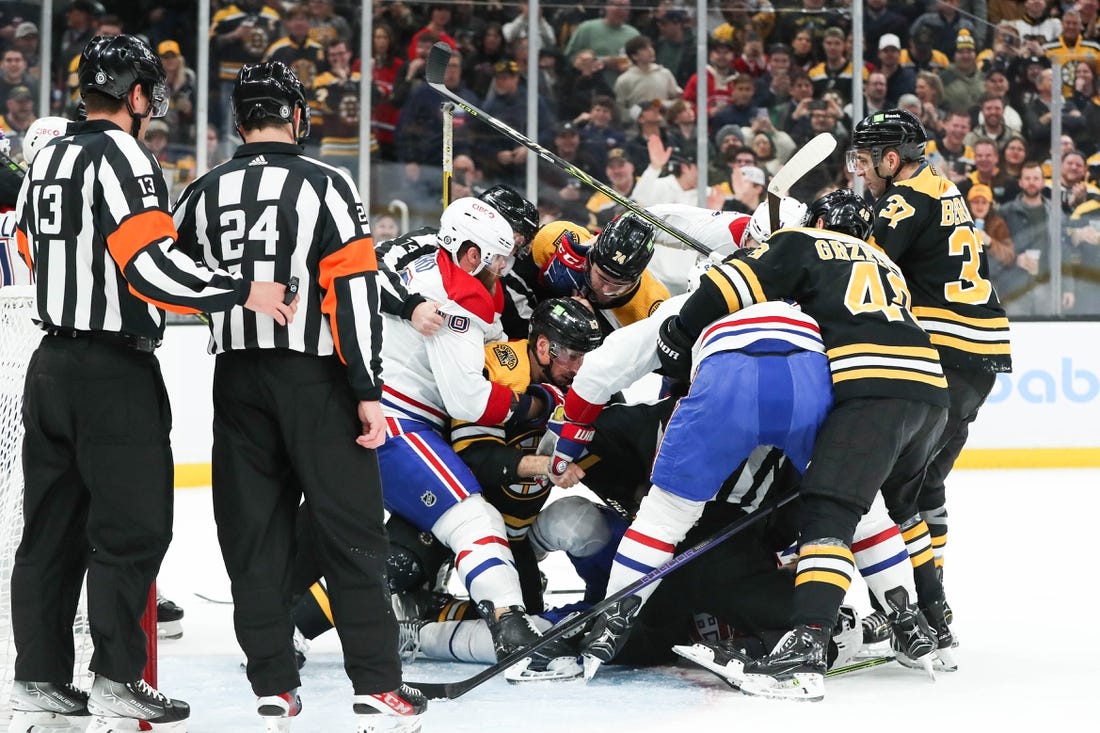 The first Montreal goal was scored during a major power play that was assessed after Boston’s A.J. Greer cross-checked Mike Hoffman in the face less than three minutes earlier.