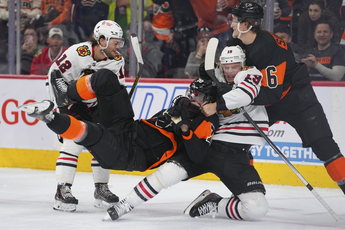 Cam Atkinson had two goals and one assist to lift the host Philadelphia Flyers past the Chicago Blackhawks 4-3 on Saturday.