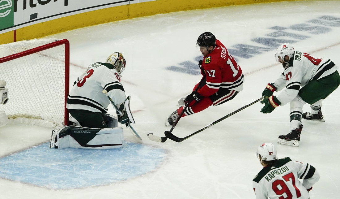 Playing before a light crowd — influenced in part by a snowstorm in Chicago earlier Wednesday as well as a puck drop of 8:50 p.m. local time — the Blackhawks and Wild skated to a brisk, penalty-free first period. Minnesota outshot Chicago 13-8 in the opening 20 minutes.