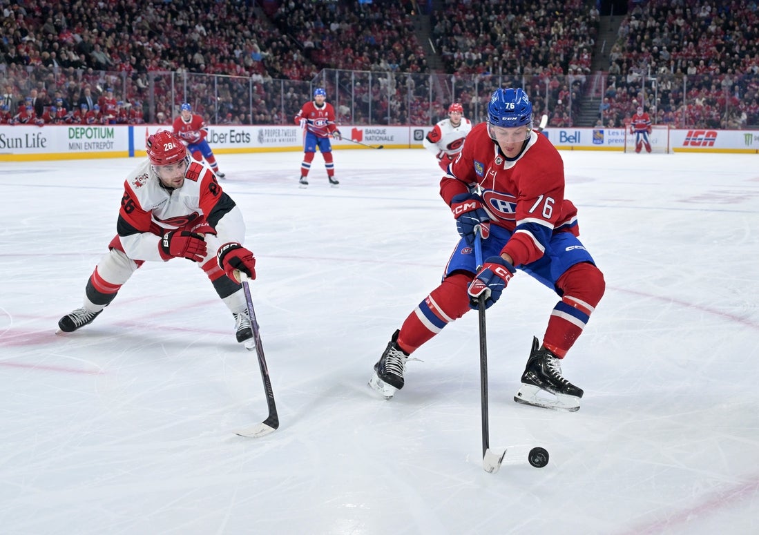 Frederik Andersen turned aside 14 shots for the Hurricanes (45-20-6, 96 points), who outshot the Canadiens 16-4 in the first period before seeing their three-game winning streak ended.