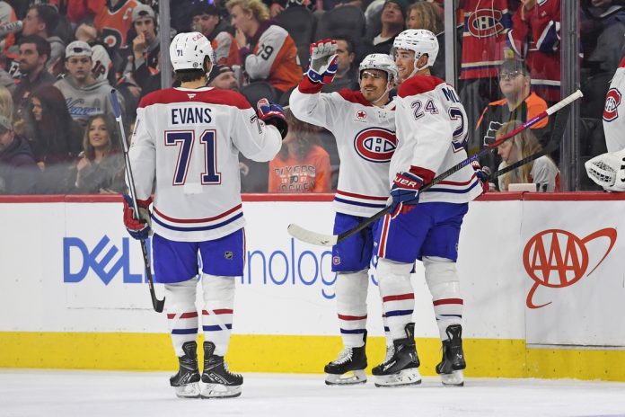 Jake Evans and Cole Caufield also scored and Cayden Primeau made 23 saves for the Canadiens, who have won consecutive games for the first time this season. They also earned their first road victory in three tries.