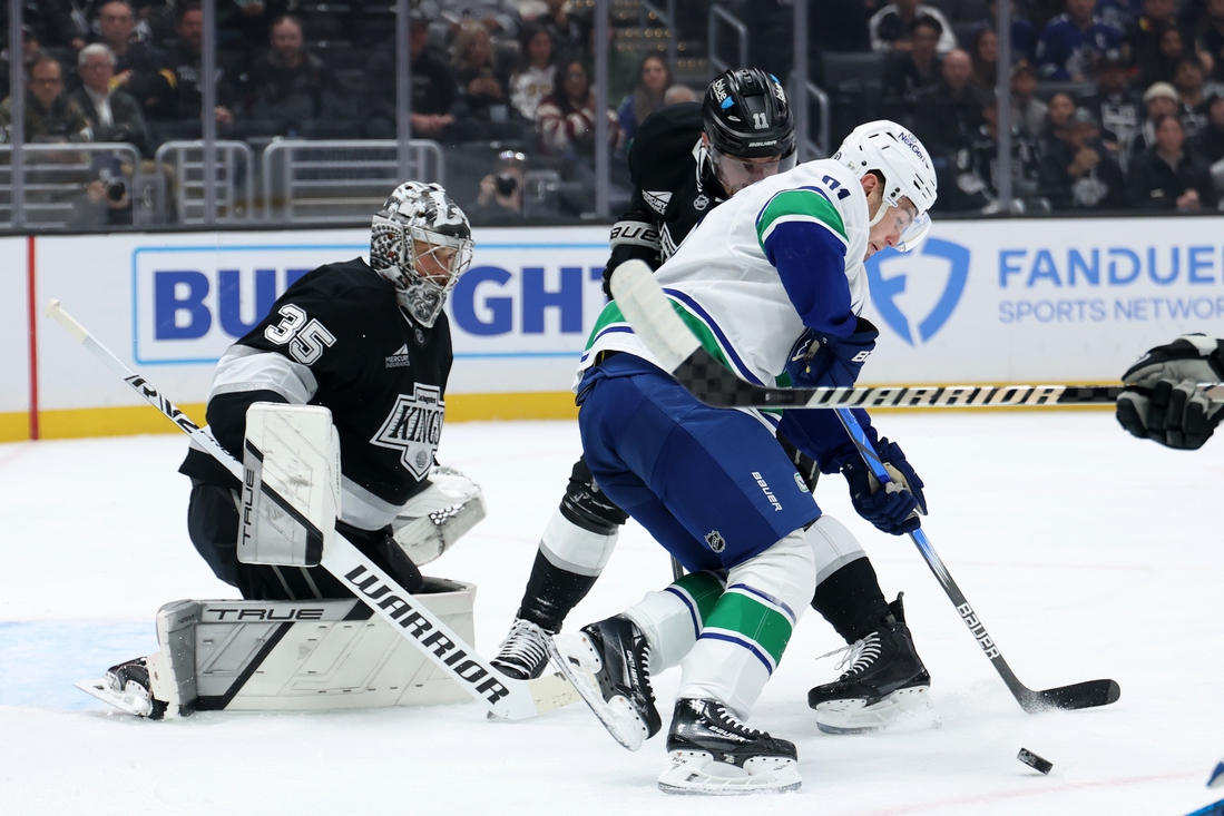 Garland drew the Canucks even during a five-minute power play after Kings forward Tanner Jeannot was assessed a major for a head hit on Brock Boeser. Garland put the puck into the crease from the left side, and he was credited with his fourth goal of the campaign when Kuemper knocked the puck into his own net.