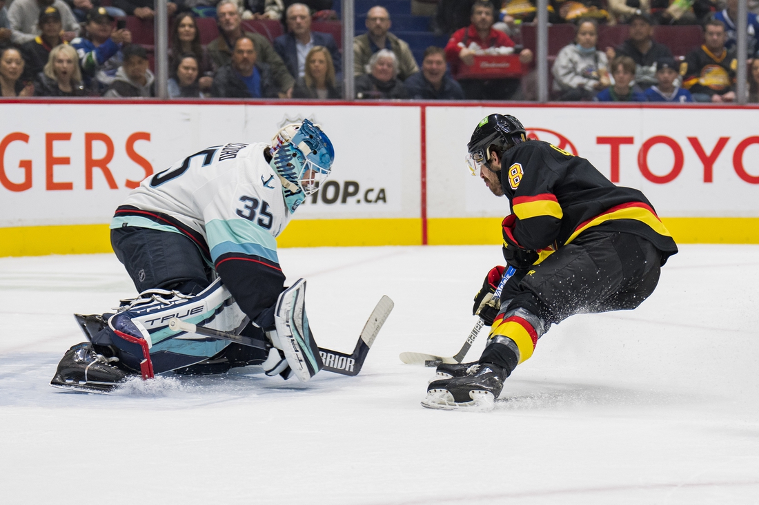 The Canucks killed off one five-on-three situation early in the second period, but Seattle finally got on the board at the end of another two-man advantage.