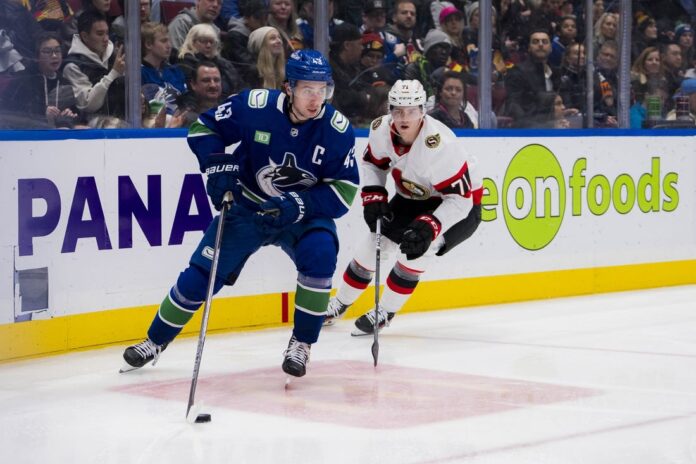 Nikita Zadorov took a shot from the point that deflected off Miller, and an Ottawa defenseman, and went into the net just 24 seconds after Pettersson’s tally to give the Canucks a 4-0 lead, and the rout was on.