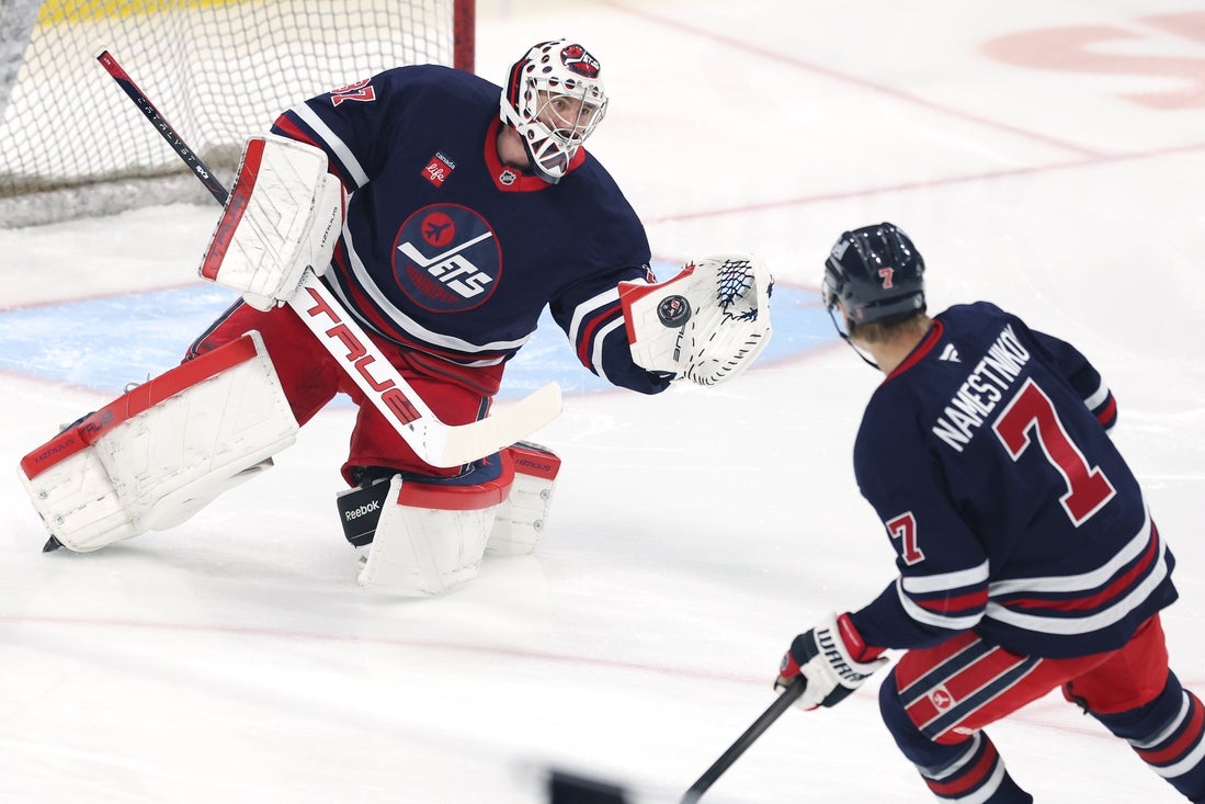 The NHL-best Jets (50-19-4, 104 points) will finish a four-game homestand Sunday. They have won consecutive games and six of their past eight.