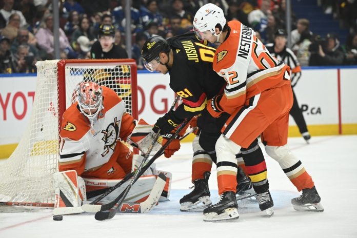 Terry scored his 20th goal of the season to give Anaheim a 1-0 lead at 1:21 of the first period, fitting the puck between Demko and the short-side post from the right circle, but the Canucks came back with five straight goals in a 4:30 span of the first.