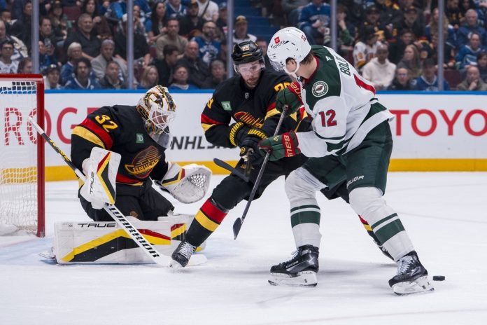 Brock Faber’s power-play equalizer made it a 1-1 game at 7:12 of the third, but the Canucks answered just over nine minutes later. Filip Hronek sent a nice pass to a wide-open Sherwood at the side of the Wild’s net, and Sherwood converted the game-winner.