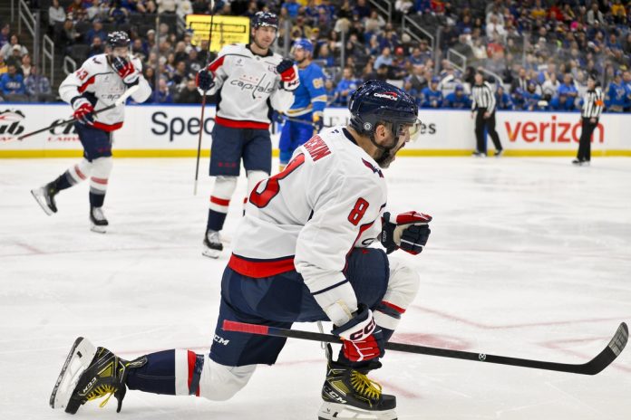 Superstar captain Alex Ovechkin scored Washington’s goal on Tuesday, giving him four in two games and 883 in his career. He needs 12 more to break Hall of Famer Wayne Gretzky’s career goal-scoring record.