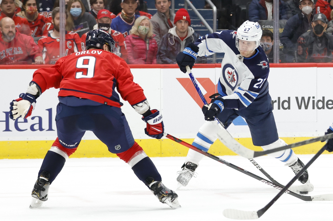 Orlov, 30, has 19 points (five goals, 14 assists) and 32 penalty minutes in 38 games. He had a goal and an assist against the Jets and served a two-minute minor for slashing earlier in the game.