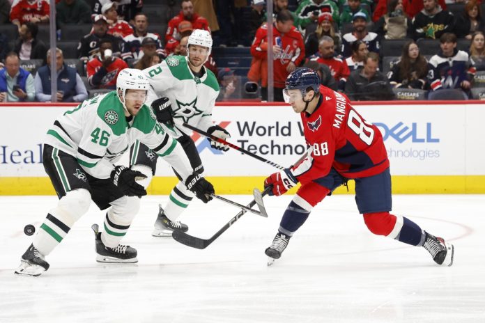 Washington answered 55 seconds into the second period. Off a Dallas defensive-zone turnover, some pinpoint passing from Connor McMichael and Pierre-Luc Dubois concluded with Wilson pushing in the equalizer.