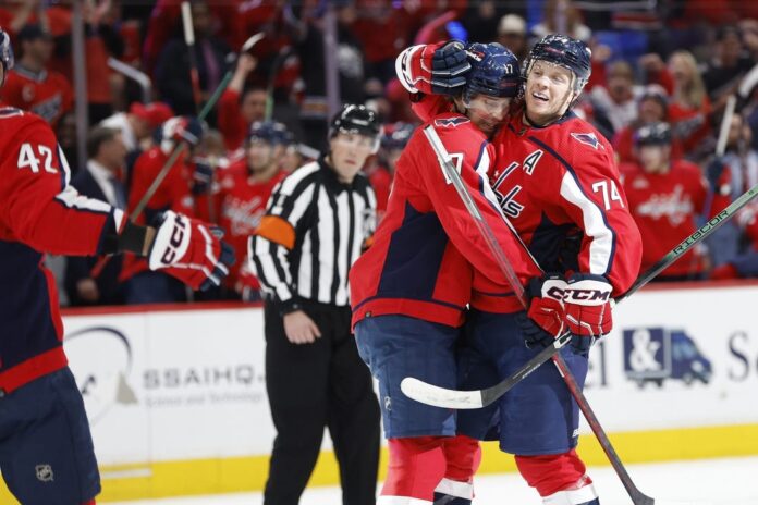 Boston didn’t record a shot on goal until the 11:36 mark, and Washington made it a 1-0 game only 24 seconds later when Carlson let go a one-timer from the blue line that slid through the slot and over Swayman’s shoulder.