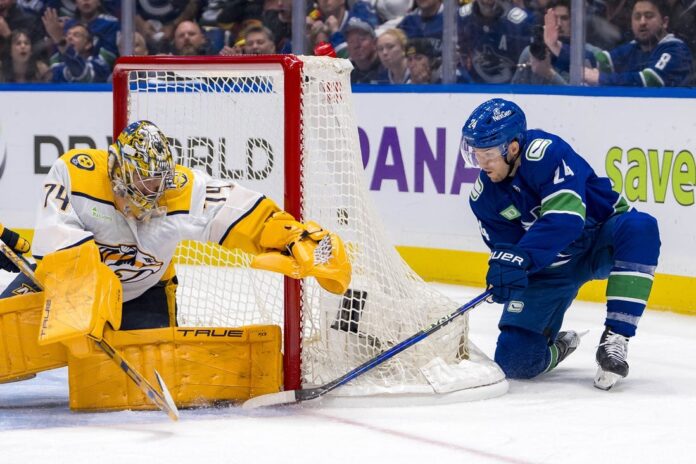 Despite the win, Vancouver did not return much fire as Nashville goalie Juuse Saros faced only 12 shots, stopping 10.