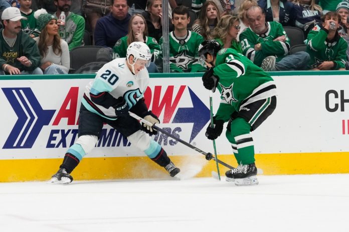 Seattle’s best scoring chance came while on a power play just past the midpoint of the third, when Jared McCann got the puck just outside the left post, but he pulled his shot wide.