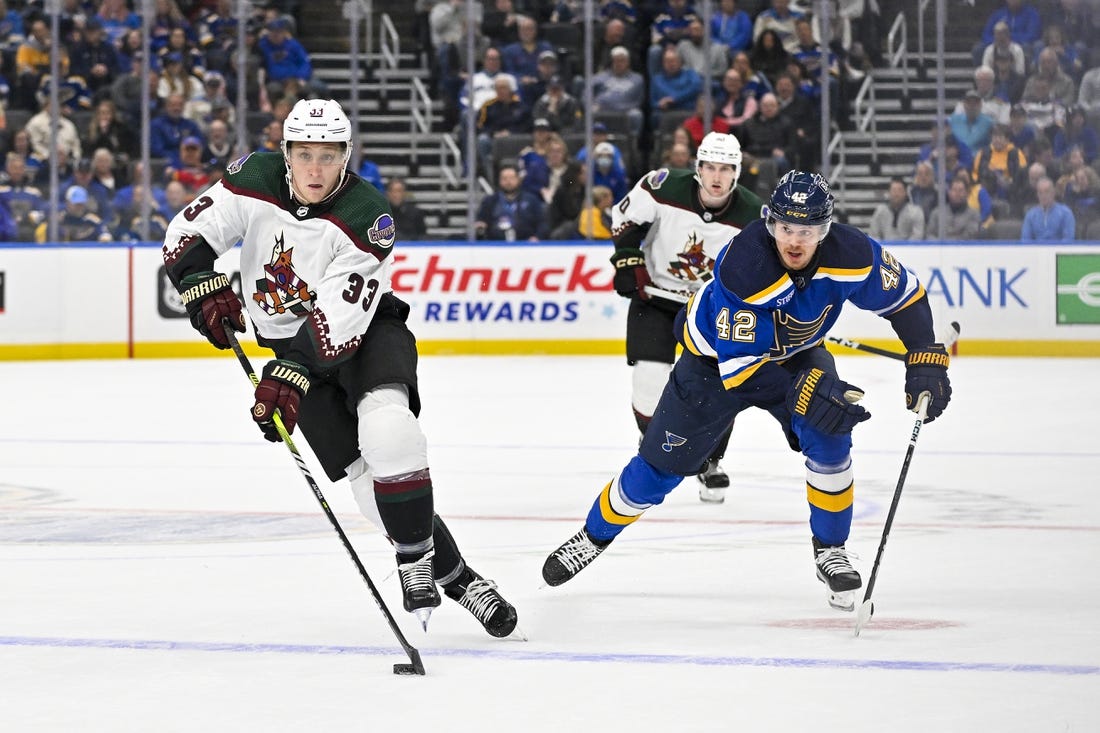Arizona took advantage of St. Louis being whistled for having too many men on the ice by opening the scoring with 5:18 remaining in the first period.