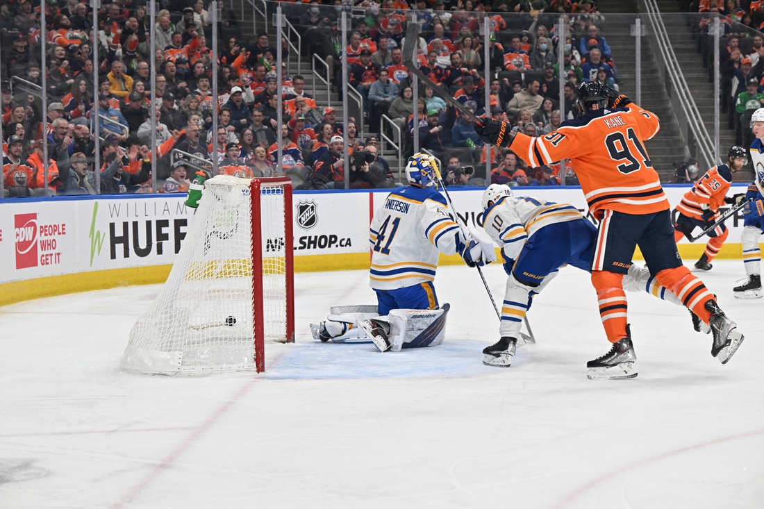 McDavid doubled it to 2-0 at 13:10. Yamamoto’s shot from the slot was blocked by the Sabres and the puck rolled to McDavid in the right circle, where he picked up the loose puck and skated to the net before tucking it in short side.