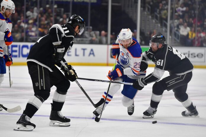 The Kings controlled the first period, outshooting the Oilers by an 11-2 count while claiming a 2-0 lead.