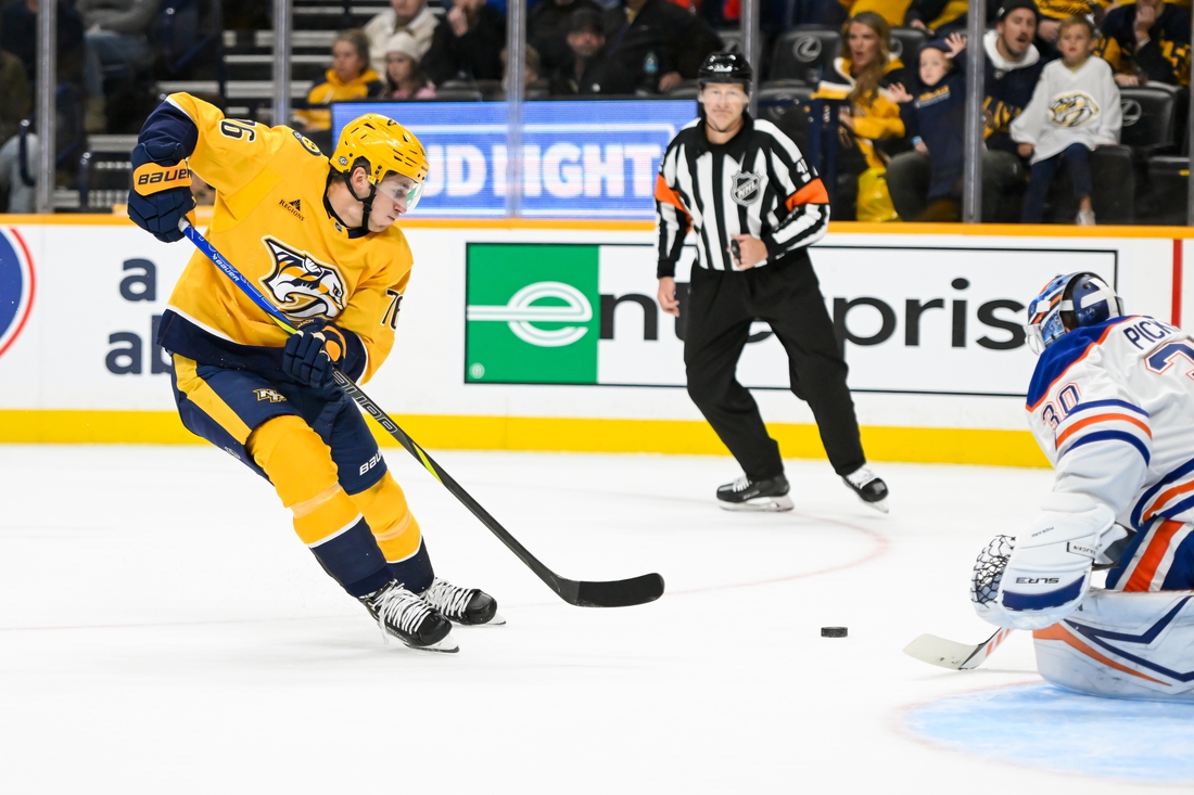 Forsberg opened the scoring at 11:46, tipping Josi’s point shot past Pickard for his second goal of the season. Forsberg has 13 goals and 12 assists in 26 career games against the Oilers.