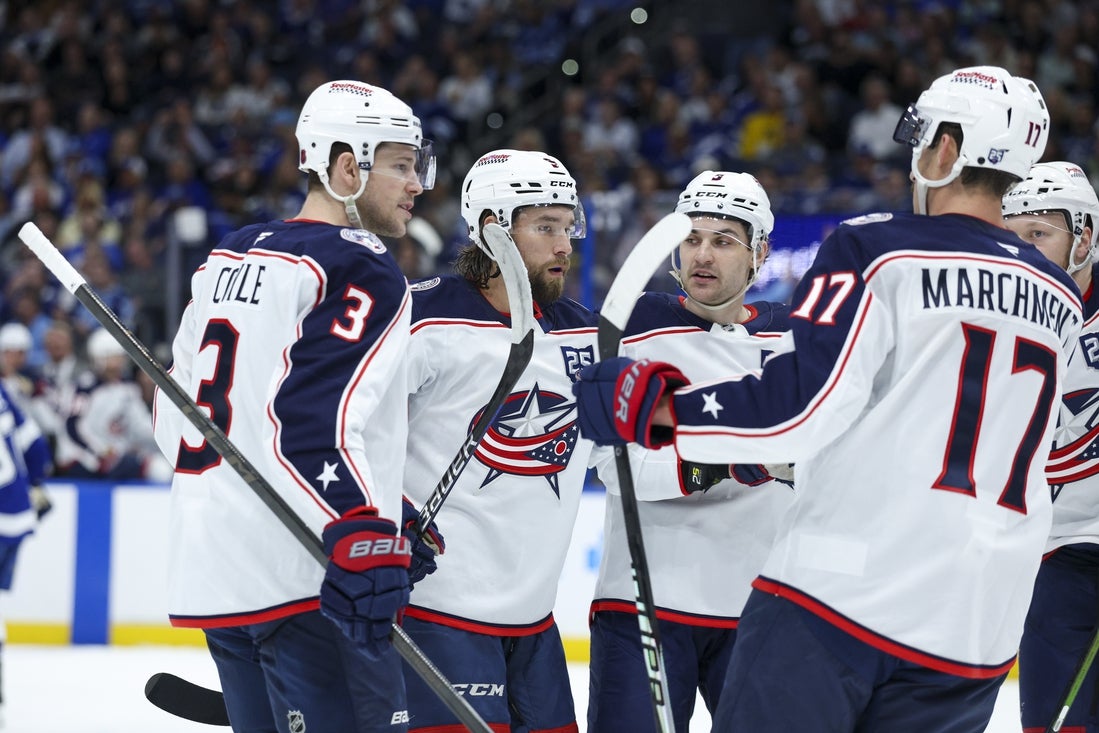 Quick puck movement by the Blue Jackets on their third power play ended with Marchenko wiring one by a stickless Vasilevskiy from the left circle for a 3-1 advantage at 11:42 of the second.