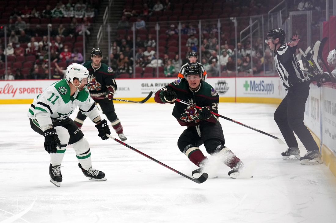 Following a pedestrian first period where Arizona outshot the Stars 12-7, the Coyotes finally struck fist. With 9:47 remaining in the second period, Crouse planted himself perfectly in front of the Dallas net to push in Schmaltz’s pass from behind the goal.