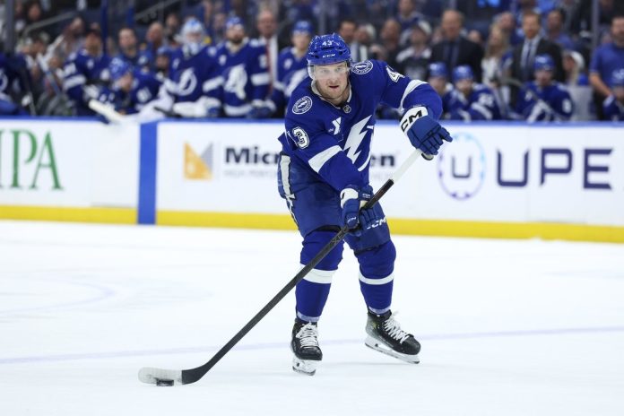 Boston nearly had an easy rebound goal with a loose puck in Vasilevskiy’s blue paint, but charging defenseman Charlie McAvoy was dragged down by Raddysh, preventing the first tally but creating a power play.