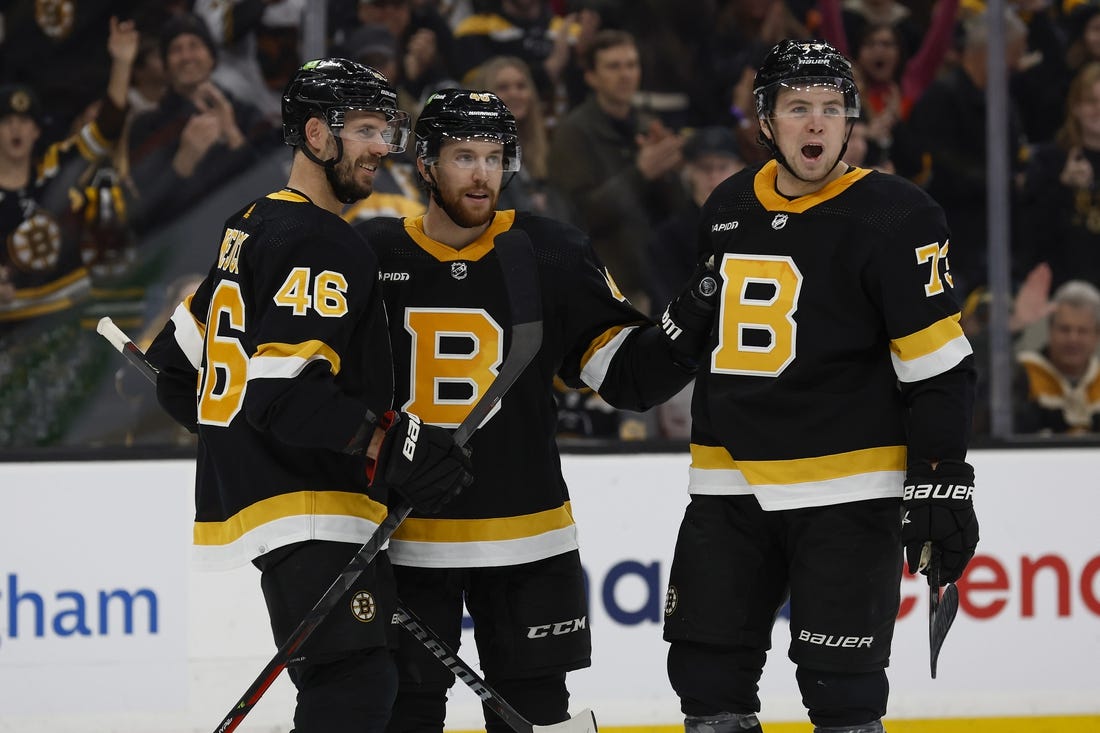 Centering them was Krejci, who became the fifth player in NHL history to record at least three assists during his 1,000th career game.