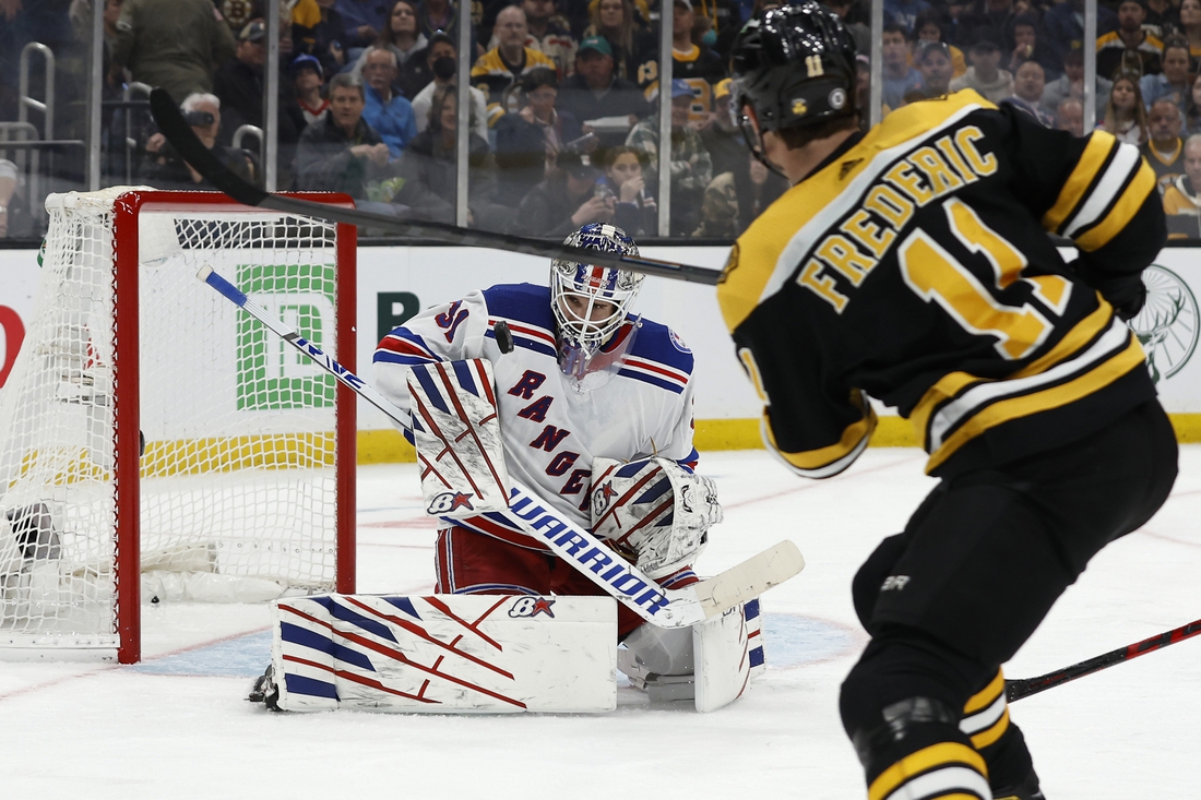 Taylor Hall and Trent Frederic also scored goals for the Bruins (48-25-5, 101 points), who have won three of four following a Thursday loss in Pittsburgh and snapped New York’s four-game win streak.