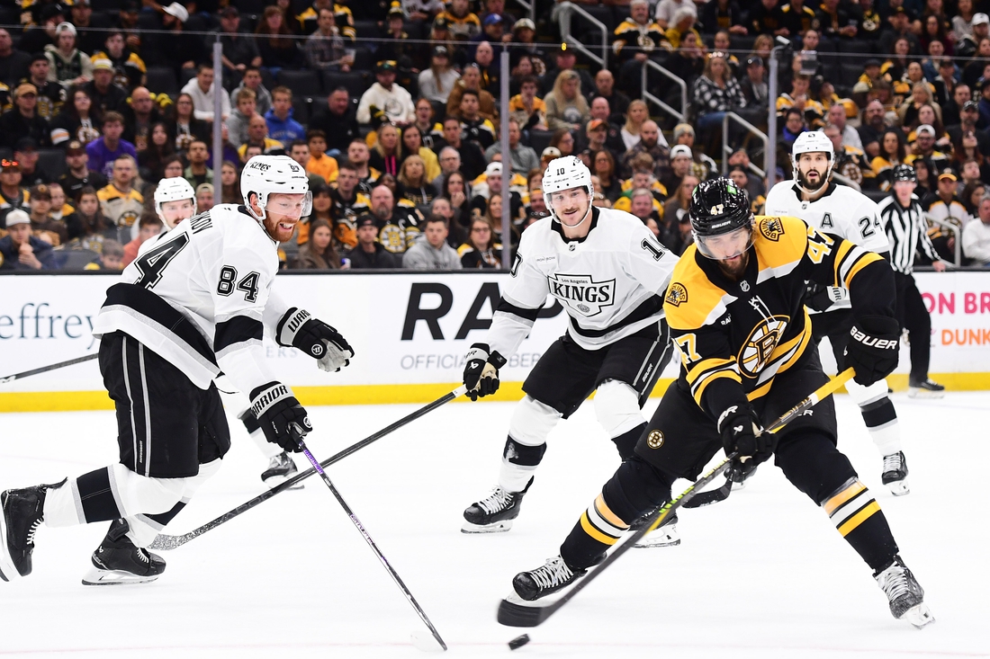 David Pastrnak scored at 3:07 of overtime as the Boston Bruins came back from a one-goal, second-period deficit to defeat the visiting Los Angeles Kings 2-1 on Saturday afternoon.