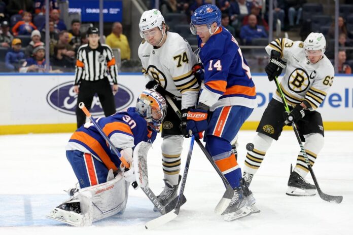 Nelson put in a carrom of Horvat’s shot off the boards for a 4-3 lead with 7:59 to go in the third. But Boston answered as Lohrei sent in the puck from the corner, below the goal line, and had it sneak past Sorokin to tie the game with 3:09 remaining.